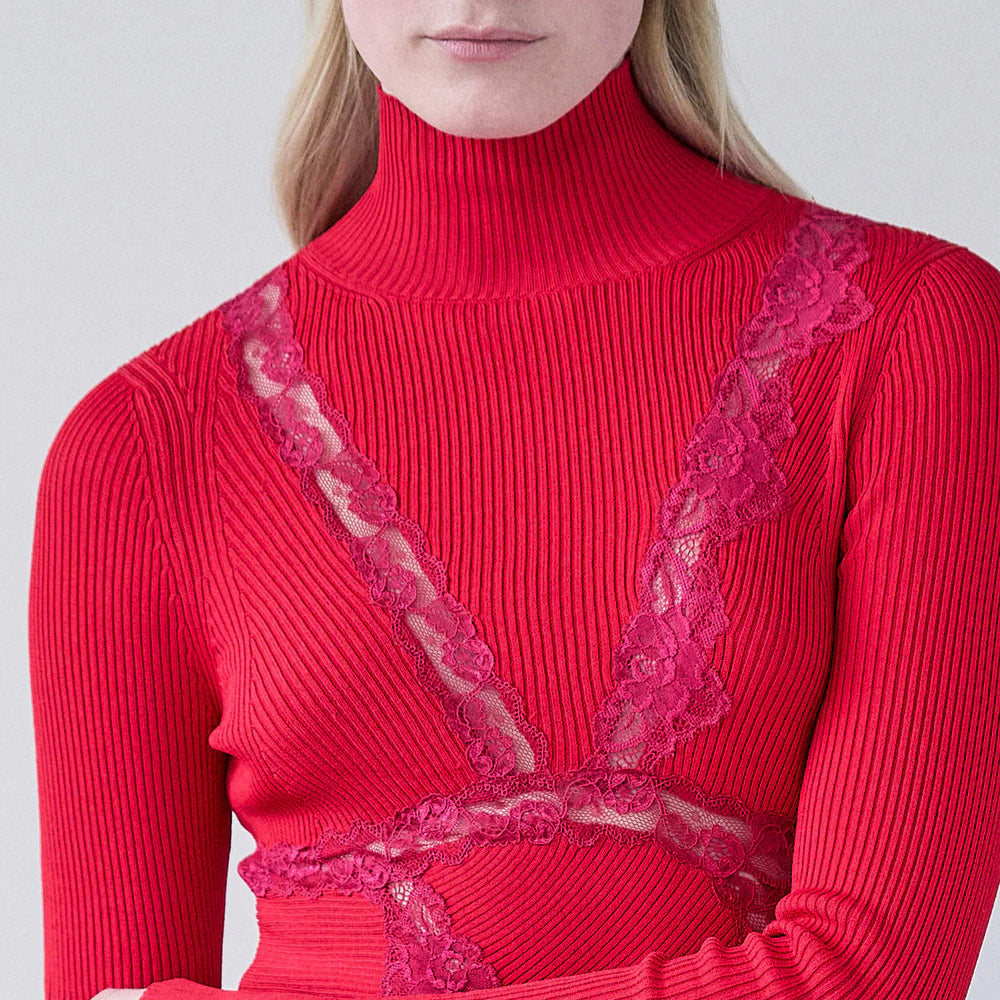 SIGNATURE SATIN ASYMMETRIC LACE TANK TOP - 3 Left