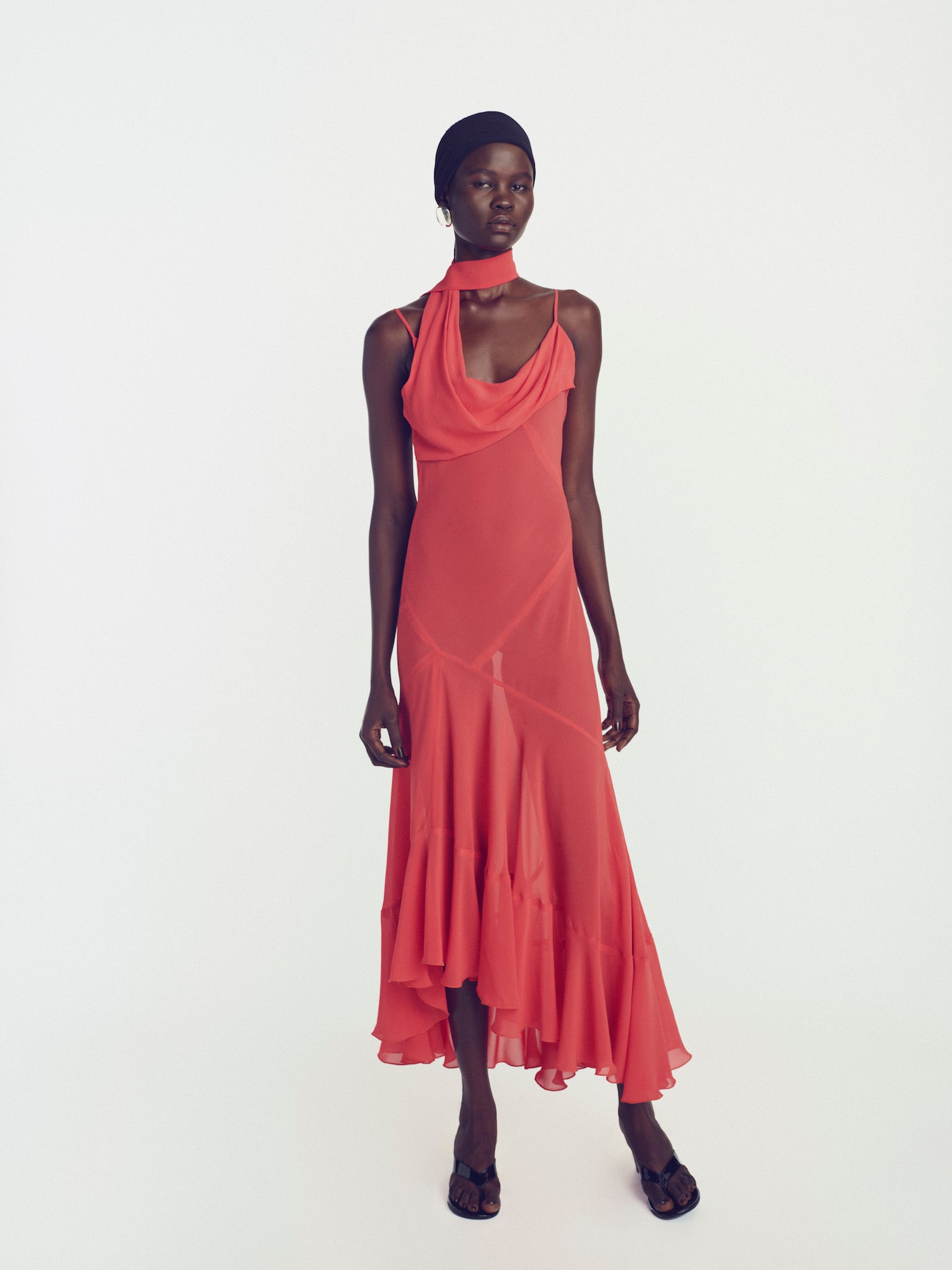 ASYMMETRIC PATCHWORK BIAS DRESS WITH DRAPING DETAIL -