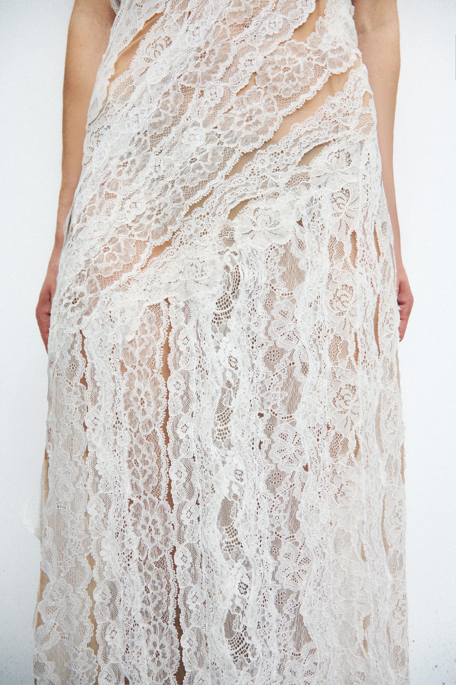 SKIRT WITH LACE DETAILS AND SIDE SLITS