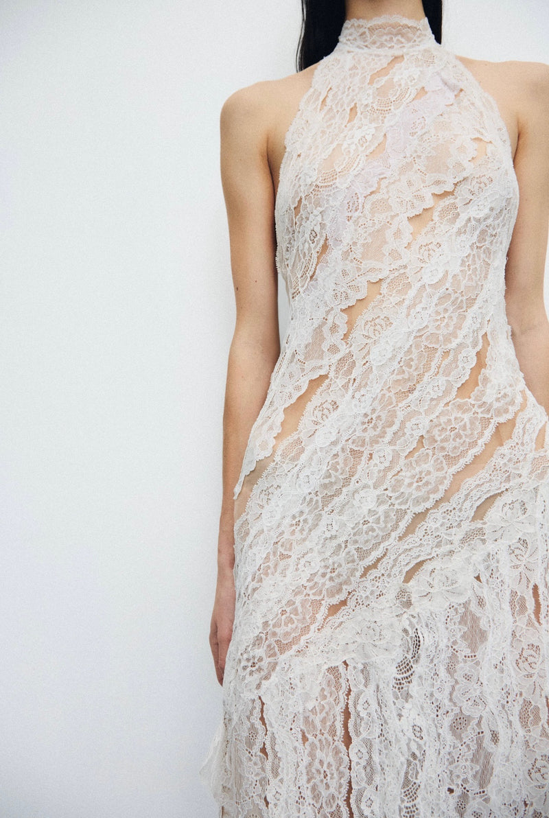 Much of our production is based on upcycling leftover and deadstock materials from the industry. We have designed garment patterns capable of adapting to a wide variety of lace motifs, which ensures that we can use different runs of lace across seasons and reduce the waste of this precious material to the absolute minimum. Thus making each piece therefore unique.